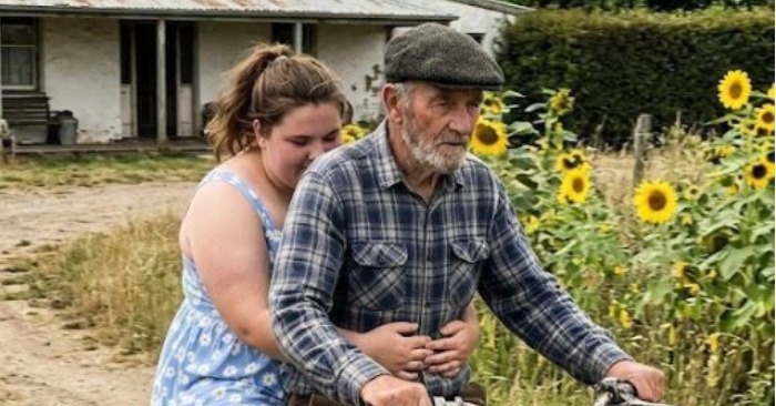 Kb. harminc éves volt, világoskék ruhát viselt, pipacsokkal díszítve, és úgy kapaszkodott az öreg férfiba, mintha ez teljesen természetes lenne. A motor lassan haladt, néha dadogott a motor, néha lábbal kellett tolniuk, mert a motor láthatóan nem akart tovább működni.
